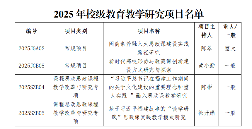 近日,根据《关于公布2025年校级本科教育教学研究、案例(库)、课程思政教学名师等项目评选结果的通知》(商院教务〔2025〕11 号)文件精神,我院获得校级教育教学研究项目4 项,本科教学案例库3项,具体名单如下: