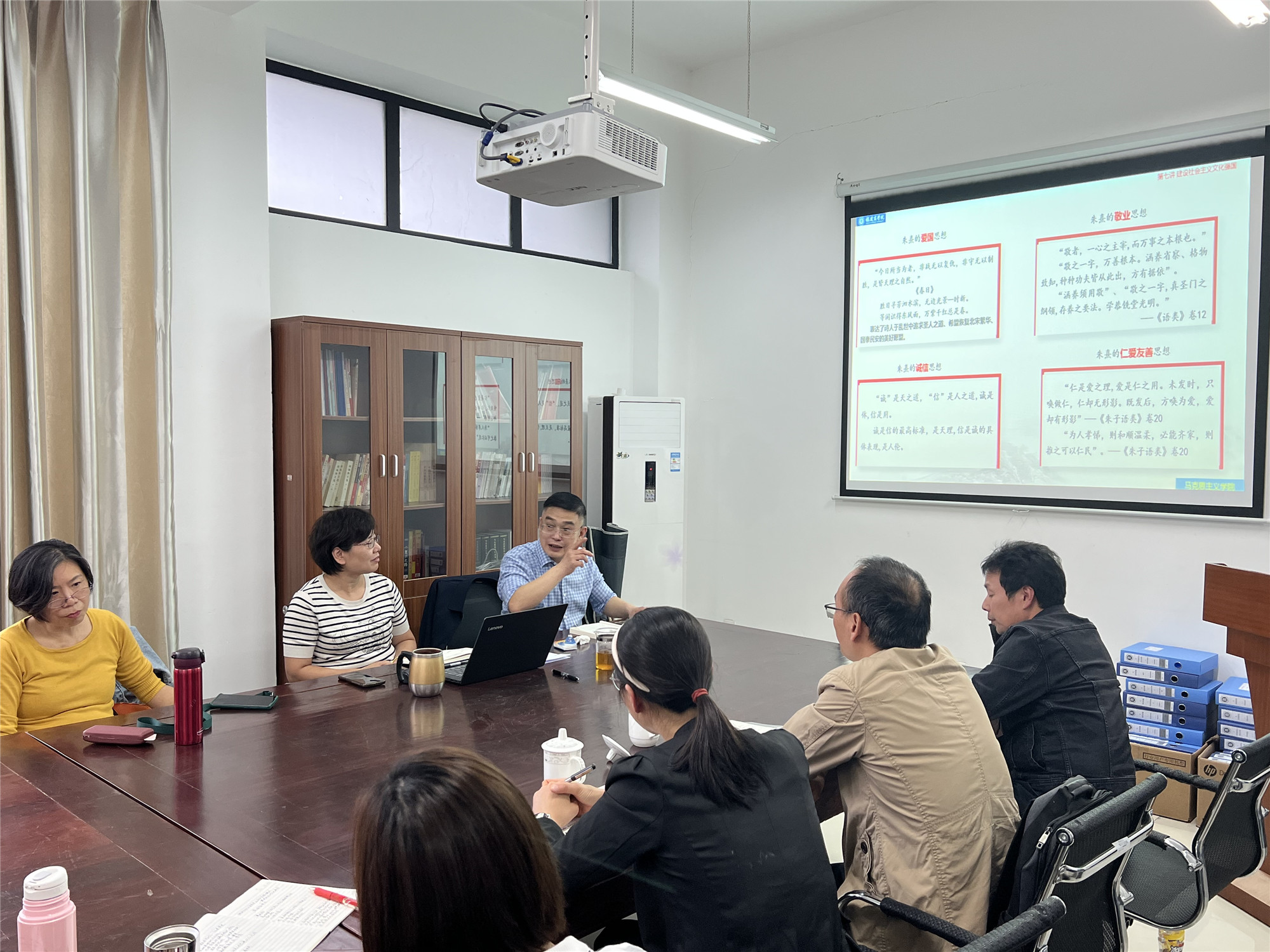 集备会过程中,与会老师分别对三位老师分享的主题内容、教学方法、教学策略和引用的案例进行讨论、分析,并提出建议。吴访益副书记做了精彩点评,他指出,闽北是朱子理学萌芽、发展、集大成的文化圣地,为我们研究朱子理学提供了得天独厚的条件,他还指出,思政教师既要传承好中华优秀传统文化,提升文化素养,加强理论研究,又要加强对学生的意识形态教育,引导学生树立正确的历史观、文化观、价值观。参会教师表示,将继续学习贯彻“两个结合”思想,用好课堂教学主渠道筑牢意识形态主阵地,为加强意识形态建设,弘扬中华优秀传统文化,提高中国文化软实力发挥更大作用。