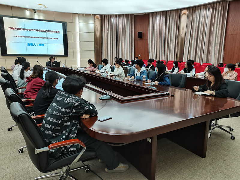 10月26日晚,我校2021年青年马克思主义者培养工程培训班在明德楼视频会议室举行“正确认识新时代中国共产党总结历史经验的新境界”专题讲座。本次讲座由永利3044集团院长林萍教授主讲,校“青马班”学员、校团委学生干部、校团委老师共60余人参加本次讲座。