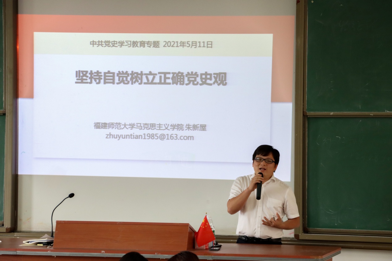 5月11日下午,马克思主义理论大讲堂邀请党史学习教育省委宣讲团成员朱新屋老师到我校作题为“坚持自觉树立正确党史观”的专题讲座。永利3044集团全体教师、大讲堂成员,统战部、规划处、国资处支部党员到场听取报告。