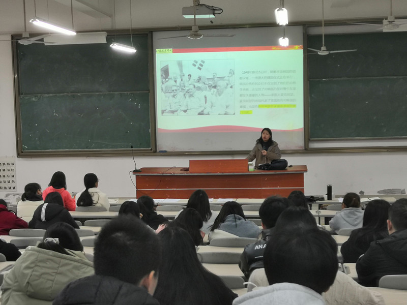 李莉副教授以朝鲜战争的爆发为切入点,从历史逻辑系统阐述了中国为什么要参加这么一场战役,同当前各种历史虚无主义观点如“朝鲜战争是一场侵略战争”、“中国抗美援朝并没有取得最终胜利”等观点作批判,并认为朝鲜战争实质是一场内战、我国通过抗美援朝有力维护了国家利益。在讲授中,李莉副教授利用丰富的史料和大量的数据重点分析了1950——1953年这段时期中国抗美援朝志愿军在朝的五次战役,尽管我军与美军在武器装备上存在“敌有我无,敌多我少,敌好我差”的巨大差距,但我军运用“你打你的,我打我的”正确战术,以及抗美援朝战士不怕牺牲、勇于斗争精神,给美国沉痛一击,取得了抗美援朝胜利。讲授过程中,李莉副教授向学子们展示了多位抗美援朝战争中的英雄故事,体现出中国抗美援朝志愿军条件的艰苦和成功的不易,给学子们树立了爱国敬党的英雄榜样。