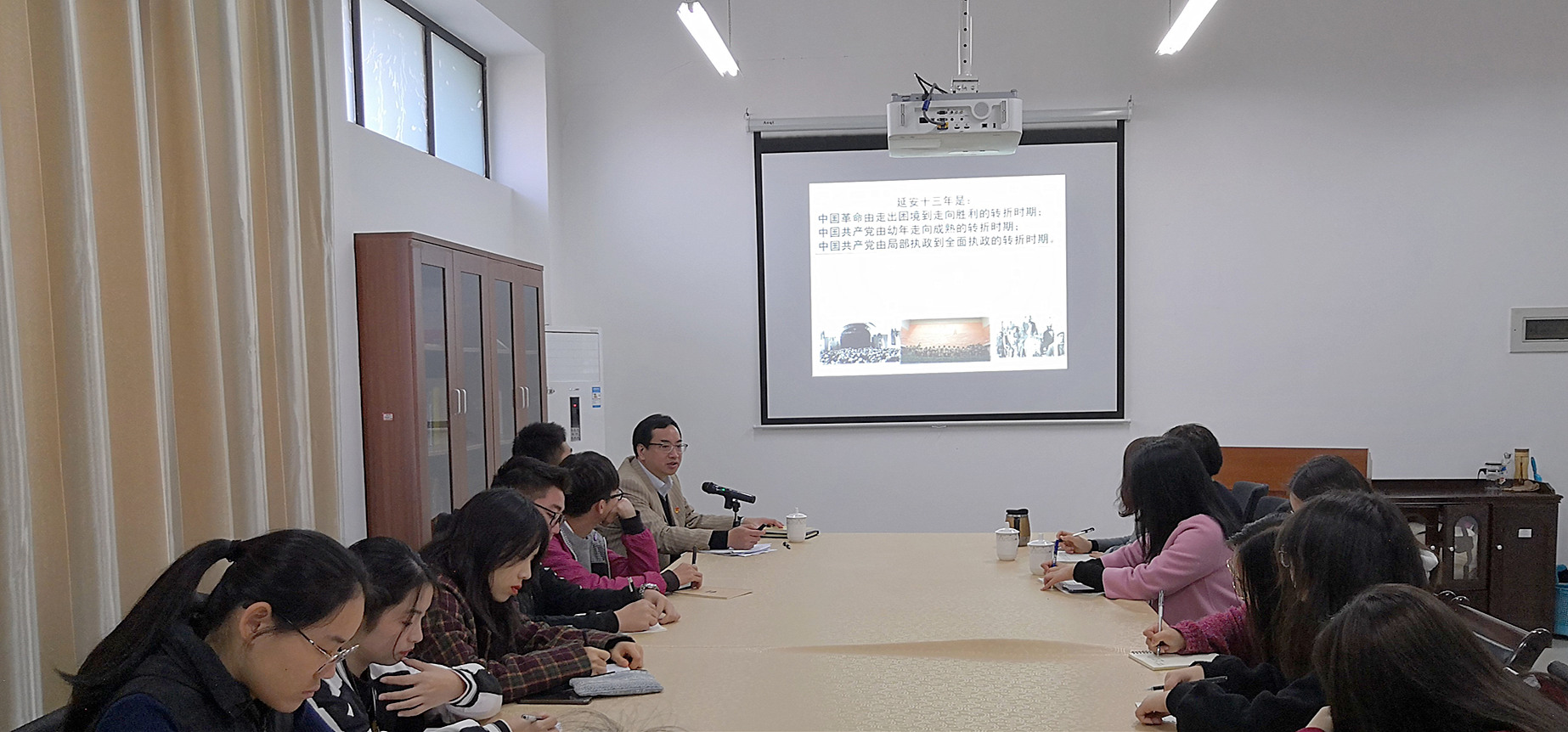 1月2日上午,副校长蒲文庆在永利3044集团会议室给财务与会计学院习近平新时代中国特色社会主义思想读书社学生上了一堂题为《中国革命成功的延安之路——中共中央延安十三年》的思政课。财务与会计学院、永利3044集团部分老师以及读书社成员参加了此次学习。