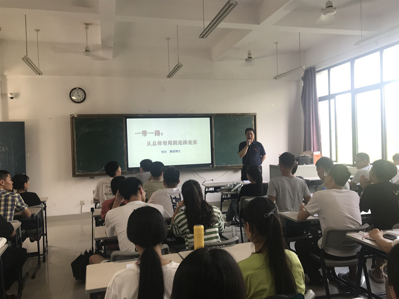 授课过程中,黄校长以问题为导向,以具体而生动的案例为素材,不时地与同学们交流互动,课堂气氛融洽。此次授课使我校学生更加深刻地了解国内外的形势,以及对“一带一路”倡议的认识,提升学生融入到“一带一路”伟大战略的意识,坚定学生实现中华民族伟大复兴中国梦的信心。