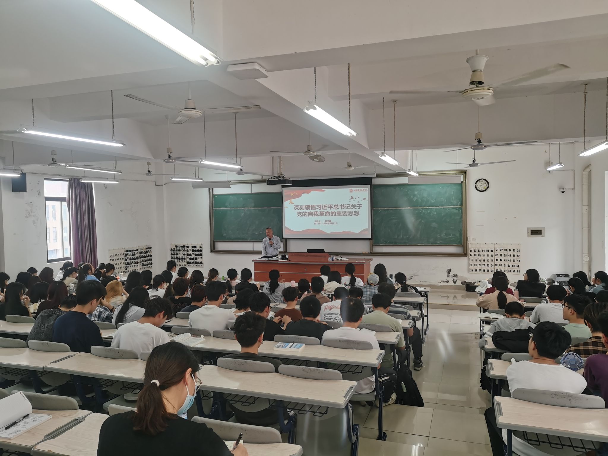 5月11日上午,校纪委书记林宇峰在连江校区诚信楼为旅游与休闲管理学院2023级旅游管理与服务教育专业学生讲授了一堂题为《深刻领悟习近平总书记关于党的自我革命的重要思想》的思政课。
