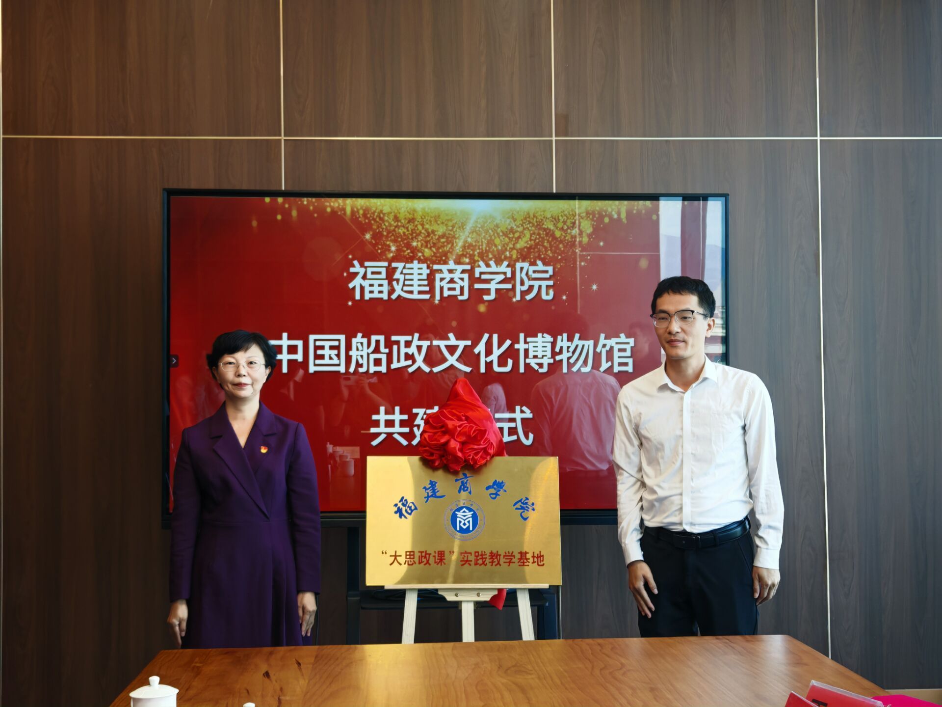 10月29日,我校与中国船政文化博物馆举行“大思政课”实践教学基地签约暨揭牌仪式。副校长林文艺、福建船政文化管理委员会副主任杨明新、福建船政文化管理委员会场馆管理处副处长王日强、中国船政文化博物馆馆长王芳、永利3044集团党政班子、工商管理学院党委班子及教师与学生代表30余人参加。仪式由馆长王芳主持。