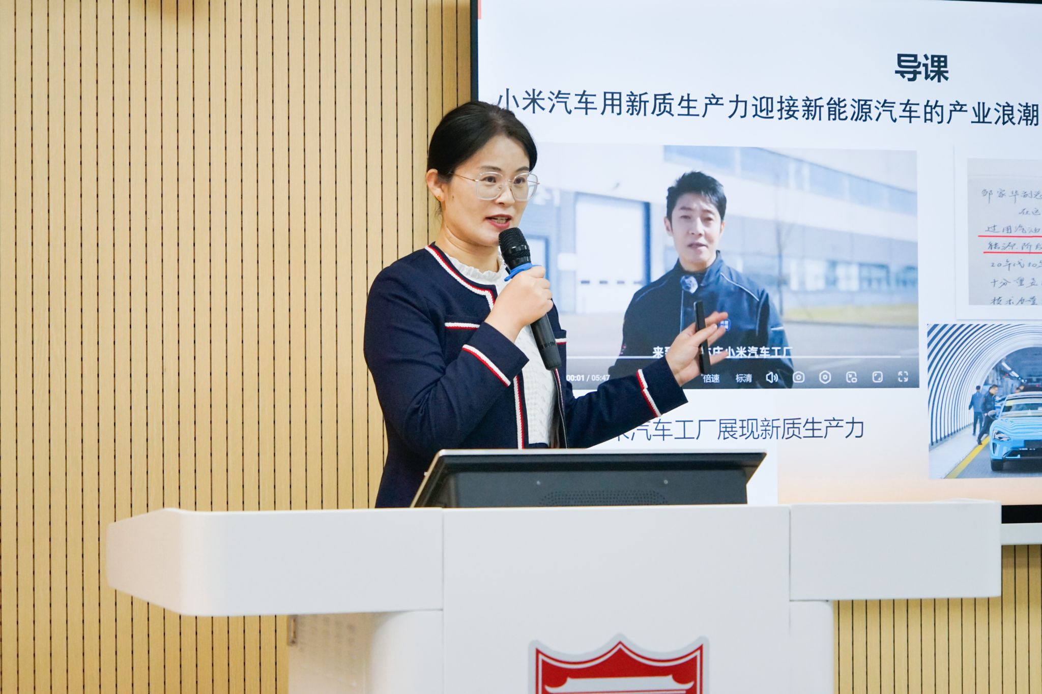会议伊始,福建师范大学永利3044集团任远老师和我校李雪飞老师围绕《马克思主义基本原理》课的核心知识点——“唯物辩证法的总特征”,依次进行了教学展示。其中,李雪飞老师以《从认识新质生产力出发感悟唯物辩证法发展观之魅力》为题,巧妙选取新质生产力引领新能源汽车为案例,围绕唯物辩证法发展观的实质、原因,状态以及趋势展开讲解,为在座师生带来了一堂生动的思政示范课。