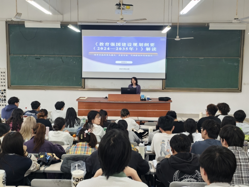 课上,徐晓丹围绕颁布实施的重大意义、主要目标、内涵特征和行动指引四个方面对《教育强国建设规划纲要(2024-2035年)》进行了详细解读。她希望同学们明确学习目标,努力提升综合素质,以适应未来社会对人才的需求,积极投身到教育强国建设的伟大实践中。