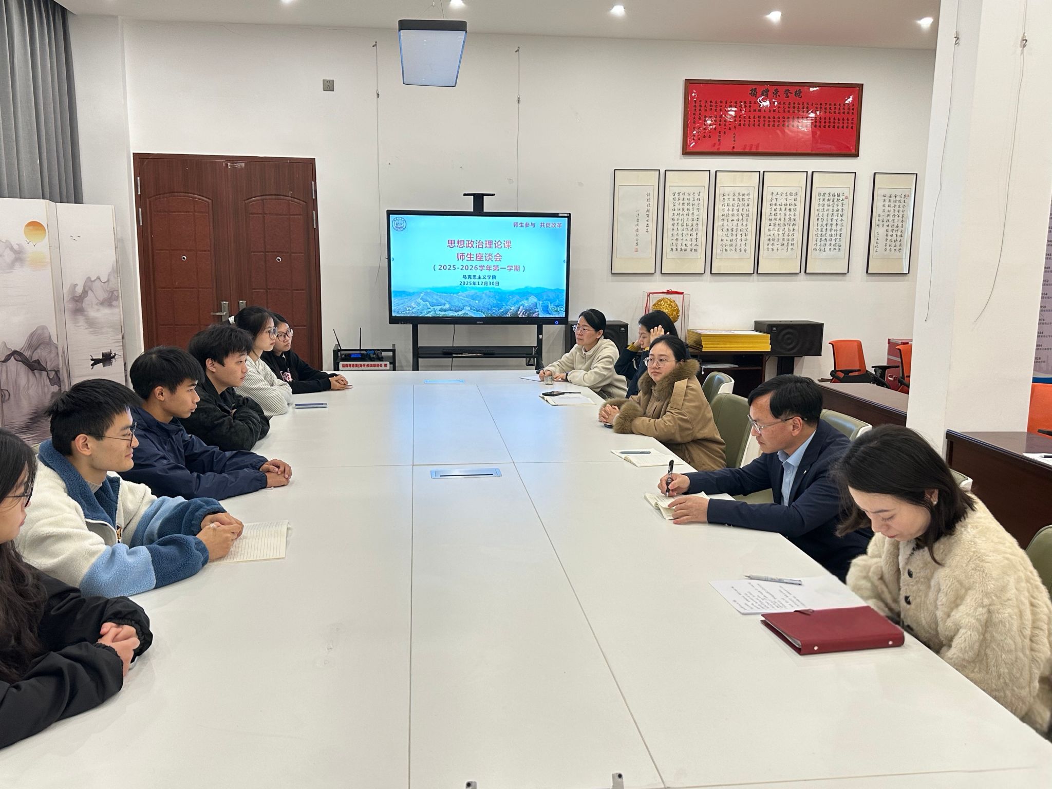2025年12月30日,永利3044集团在鼓楼校区召开2025-2026学年第一学期思政课师生座谈会。教务处、质评处、永利3044集团有关人员,校院教学督导,永利3044集团各教研室主任参加座谈会听取学生代表意见建议。
