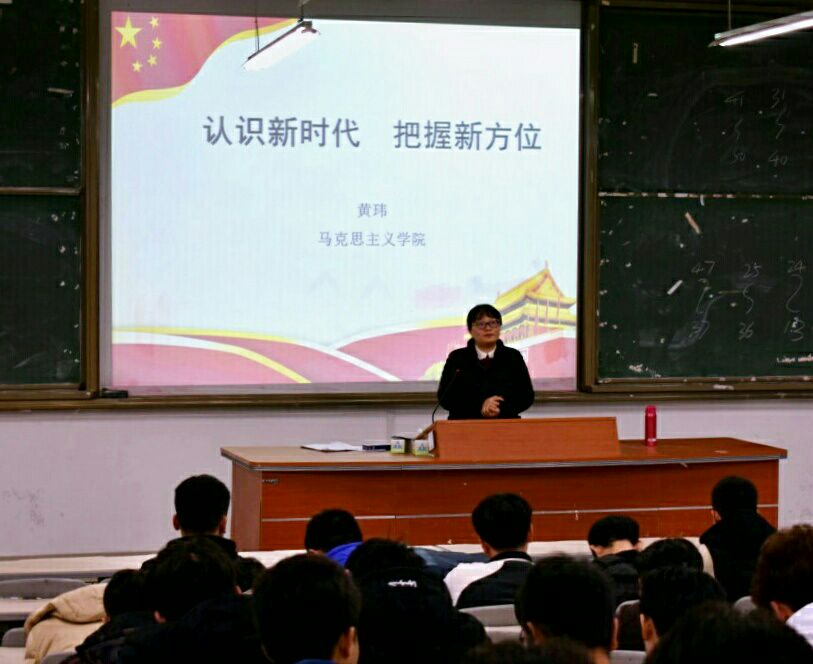 讲座上,黄玮老师将系统的理论知识面向生活,分别从中国特色社会主义进入新时代的主要依据、科学内涵、重大意义以及“新时代要有新气象新作为”四方面内容,深入浅出的向同学们说明了文化、社会和人民的发展不能和时代脱节,只有把握住时代的脉搏,紧跟时代的步伐才能赢得未来。最后,黄玮老师号召在场同学,珍惜少年时光,青春奋斗逐梦,新时代要有新气象,幸福要靠自己争取。