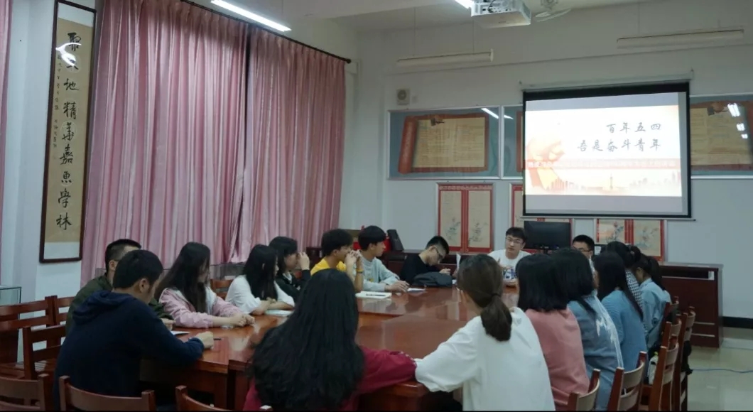 2019年5月5日晚,304永利集团习近平新时代中国特色社会主义思想读书社于连江校区自强楼活动室举办“百年五四,吾是奋斗青年”热议习近平总书记在纪念五四运动100周年大会上的讲话沙龙活动,活动由读书社社长金顺源同学主持开展,共20人参加了此次活动。