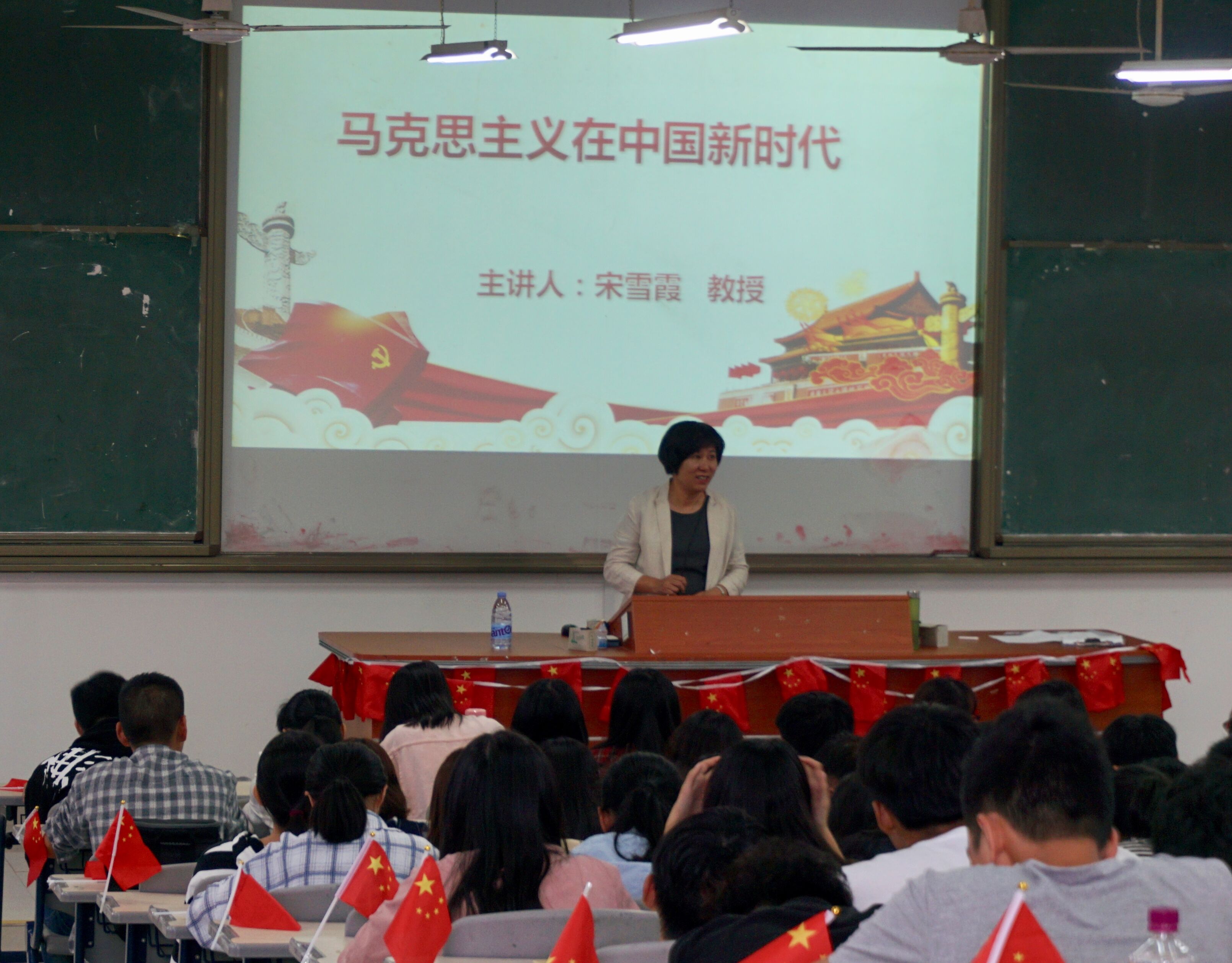 开班仪式结束后,福建工程学院永利3044集团宋雪霞教授为在场师生作了题为《马克思主义在中国新时代》的首场专题讲座。宋教授系统全面的介绍了马克思的平生、马克思信仰形成的四个阶段、继而引导同学们思考“到底什么是马克思主义?”她用拆分法告诉大家:“马克思主义中的‘马克思’为其创始人,‘主义’是核心的价值追求,把马克思所倡导的造福人民,为绝大多数人谋福利作为核心价值追求,就是马克思主义”。此外,宋教授深入浅出的剖析了当代中国的伟大社会变革,不是简单延续我国历史文化的母版,不是简单套用马克思主义经典作家设想的模板,不是其他国家社会主义实践的再版,也不是国外现代化发展的翻版。