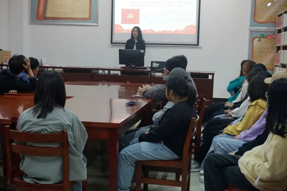为进一步学习贯彻习近平新时代中国特色社会主义思想,特别是深入学习习近平总书记在庆祝中国共产党成立100周年大会上的重要讲话精神,了解中国共产党一百多年来领导人民不断奋进的光辉历程和取得的伟大成就,宣传中国共产党在奋斗中构建的中国共产党人的精神谱系,传承中国共产党人在中华民族伟大复兴征程中体现出的爱国情怀、高尚品格和精神风骨,汲取奋进力量。校习近平新时代中国特色社会主义思想读书社到学生社团、班级等学生群体中开展主题为“弘扬革命精神 传承红色基因”宣讲活动。