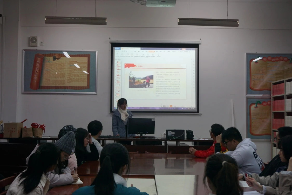 校读书社近期持续开展“齐学‘四史’担使命,共话脱贫奔小康”的宣讲活动,由陈琳、郑志杰、陈宇欣三位同学宣讲,读书社社员参加学习。