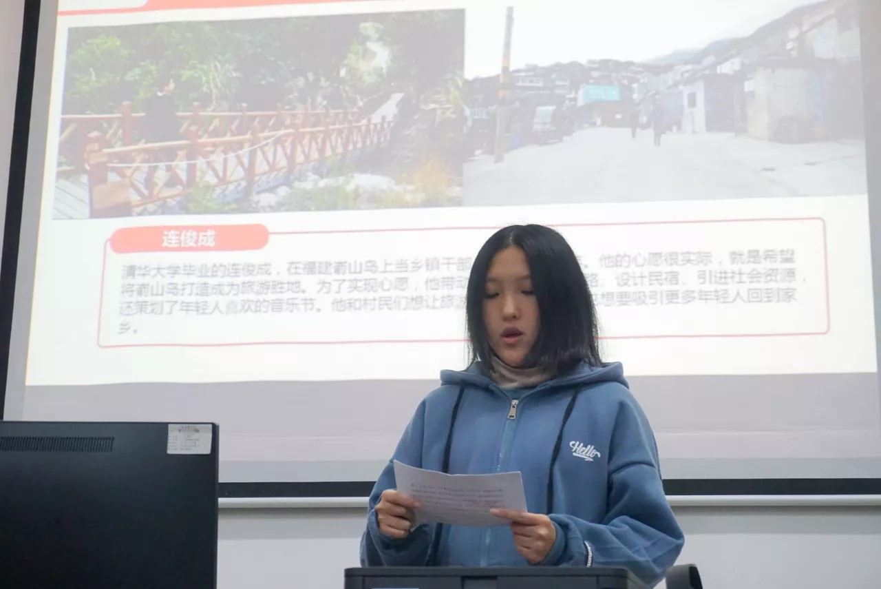 黄亚莹同学在宣讲中讲述了总书记“三进下党”的故事,她认为总书记曾经“三进下党”生动体现了他爱民为民情怀和脱贫攻坚的担当精神。他认为作为新时代青年,我们要从总书记身上汲取榜样的力量,坚定信心、奋力前行、久久为功,不负时代赋予青年的使命和担当,在加快建设新福建的伟大征程中贡献智慧和力量。