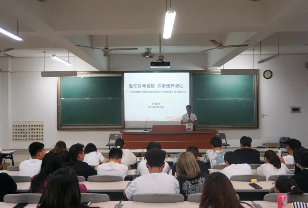为认真学习贯彻落实习近平总书记在党史学习教育动员大会上的重要讲话精神,推动学校师生深入学好党史、新中国史、改革开放史、社会主义发展史,献礼建党一百周年,普及社会科学知识。5月25日晚永利3044集团叶陈钦老师在学校科技活动周开展主题为“追忆百年觉悟 探索选择初心——五四前后中国先进知识分子怎样选择了马克思主义”讲座,校读书社近100名社员参加学习。