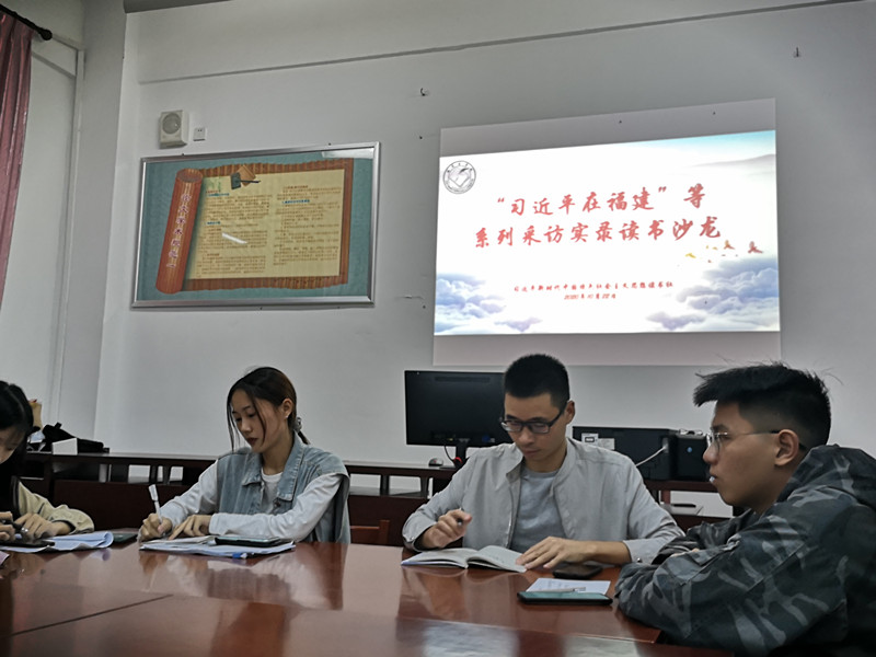 校读书社于2020年10月22日晚在自强楼读书社活动室开展《习近平在福建》等系列采访实录读书沙龙暨新学期干事见面会,会议由社长谢惠心主持。