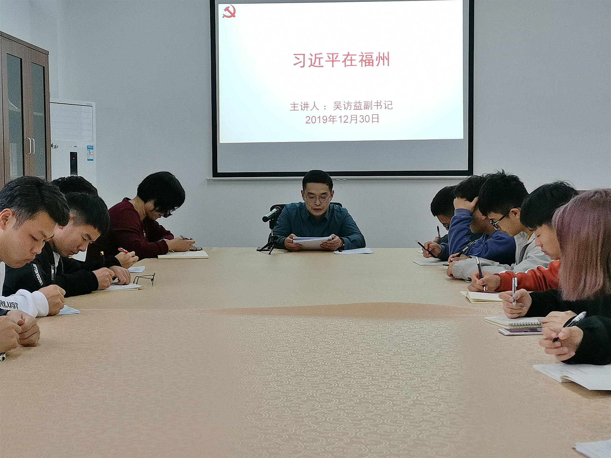 12月30日下午,校党委副书记吴访益在永利3044集团会议室,给校习近平新时代中国特色社会主义思想读书社学生讲授了一堂思政课。永利3044集团部分老师和读书社成员参加学习。